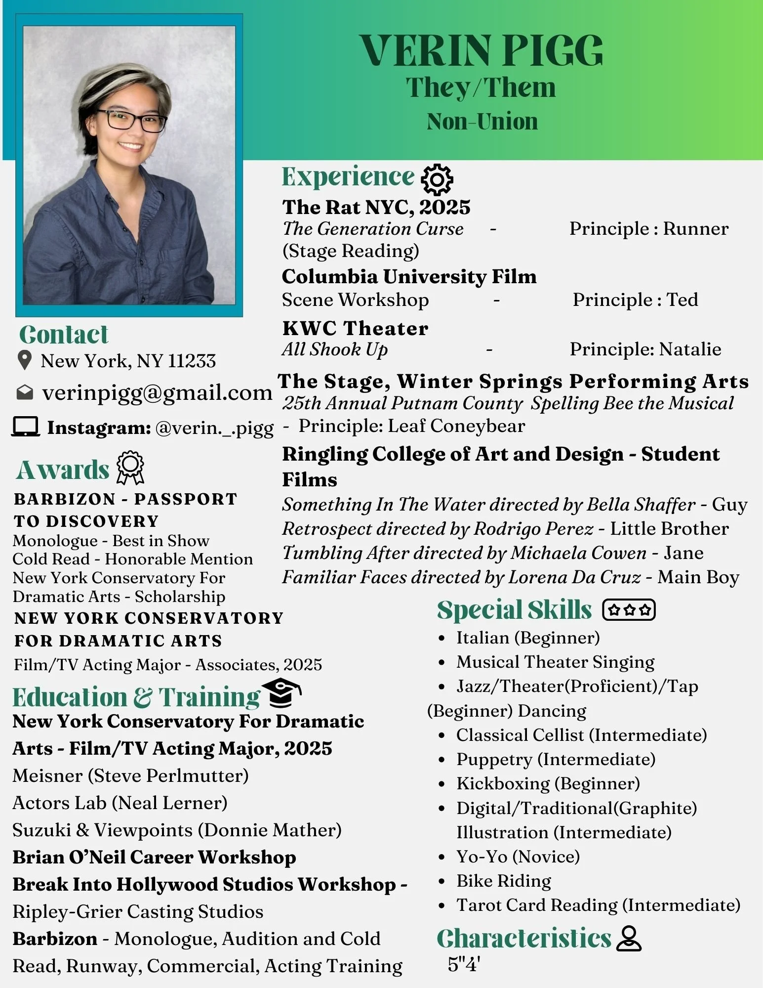 Barbizon’s Passport To Discovery - Monologue (best in show), Cold Read (honorable mention), NYCDA Scholarship